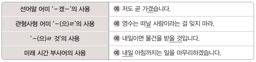 - 미래 시간 부사어의 사용: